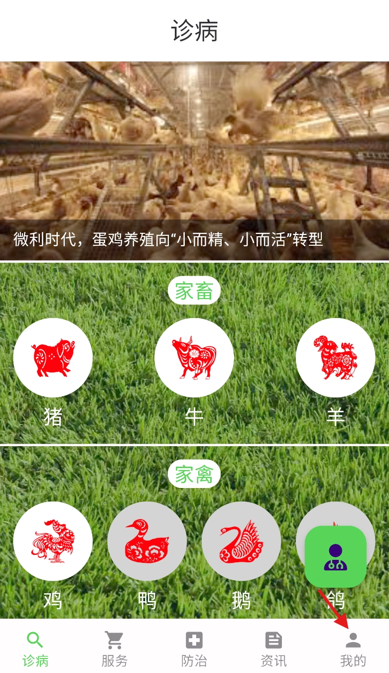 打开百畜兴旺应用后,在主界面的下方区域找到“我的”选项,点击该选项即可进入个人中心页面。