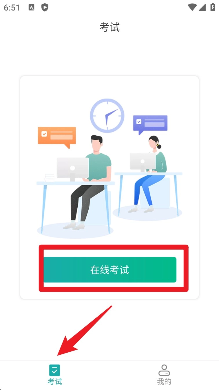 登录成功后,点击底部的“考试”选项卡,进入考试模块,然后选择“在线考试”来参与模拟测试或正式测试。