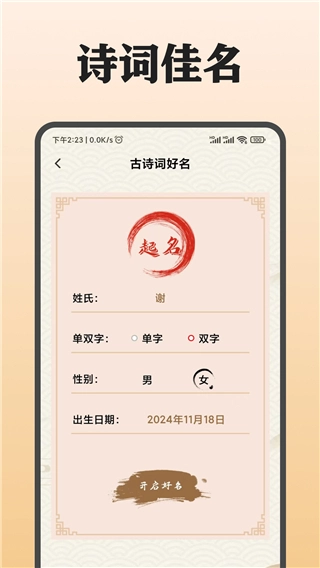 软件中提供了多种多样的取名字方法,超多高分好名字随你自由选择详细信息