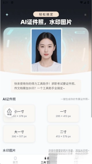 3.在工具助手页面,您既能够制作证件照,也可以添加各种类型的水印图片。
