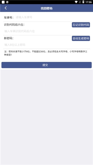 若用户忘记密码,可点击“忘记密码”选项,随后输入车牌号完成密码重置,即可登录系统。