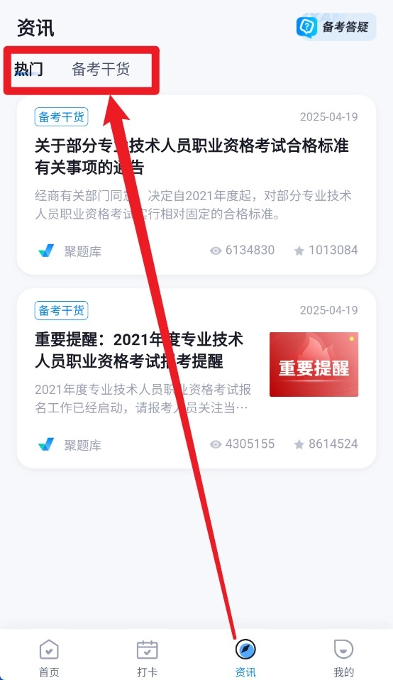 在“资讯”板块里,你能够浏览到考试相关的实用干货内容,以及最新发布的考试政策和通知信息。