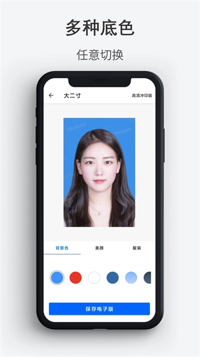 拍摄完成的证件照片支持一键保存,为用户提供可随时使用的电子档版本。