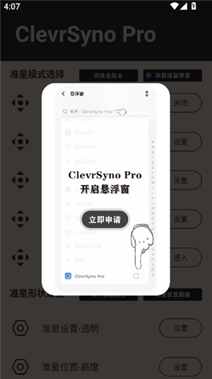 clevrsyno pro这款软件专门用于调整FPS游戏的准星,无需获取root权限就能使用。你可以一键开启或关闭准星功能,随意切换准星的样式,也能对环形准星进行调整,把设置好的准星一键应用到游戏里,为你带来更出色的瞄准感受,还能明显提高射击的命中率。有需求的朋友们,赶紧来试试clevrsyno pro吧。