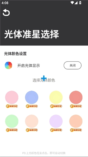 准星自定义设置:可对其进行开关控制、造型挑选、DIY环形设计以及光体准星颜色调节等操作,以此满足用户个性化的操作需求。
