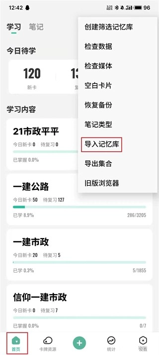 点击首页-右上角三个点-导入记忆库-选择团长分享给你的卡牌