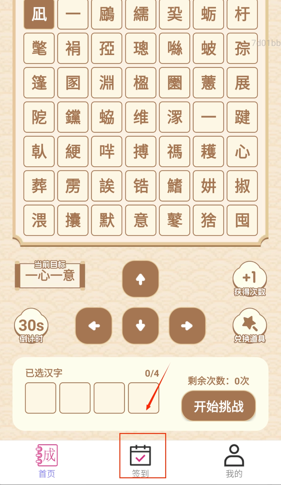 2、进入成语挑战板块选择难度等级,根据提示完成成语填空或接龙。答错时可使用步数兑换的道具获得提示。