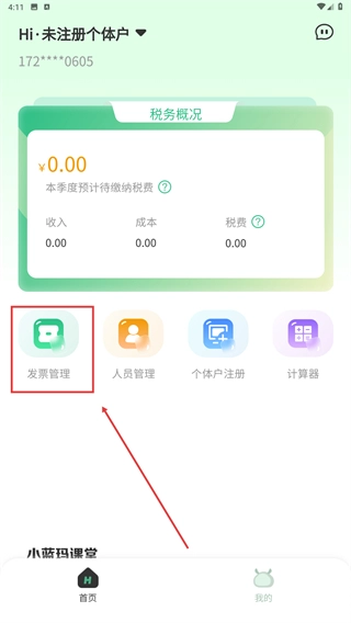 在税务概况页面,点击【发票管理】功能,能够对发票相关事务进行管理,助力税务统计工作。