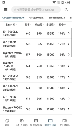 查看手机CPU单核分数、多核分数、GPU分数以及总分的最新数据。