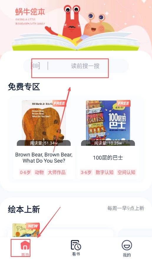 打开蜗牛绘本应用后,在首页找到搜索输入框,输入你想查找的故事书书名,就能快速定位到对应的绘本,整个操作过程十分简便。