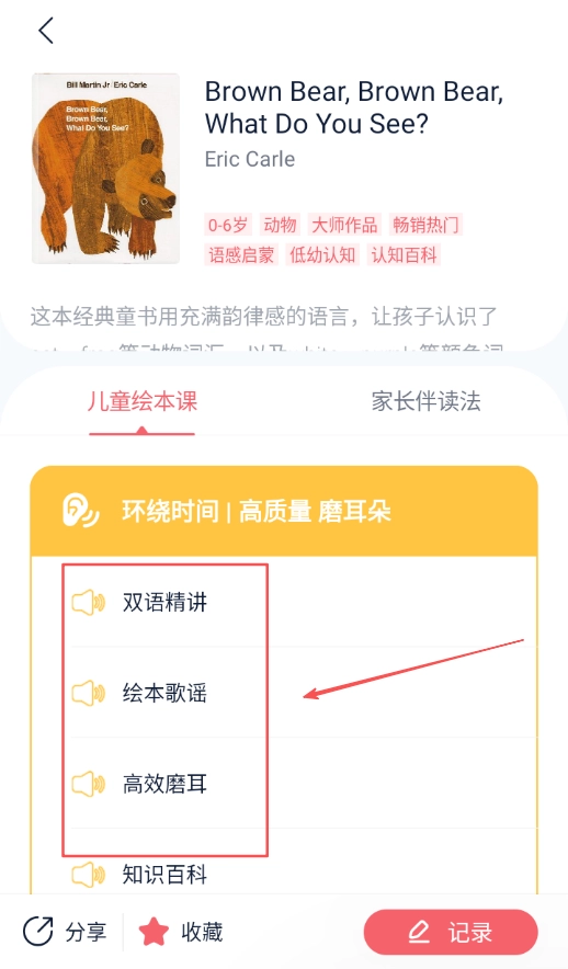 试听后觉得合适的话,还可以在书籍详情页进一步选择阅读模式,像精读模式或者共读模式,就能和孩子一同开启绘本阅读之旅了。