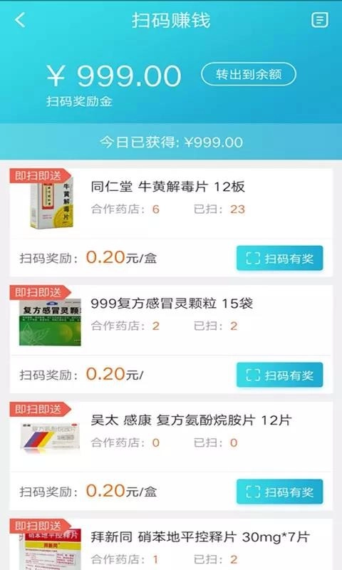 查看每个药品扫描所获的奖励数据,方便用户获取收益。