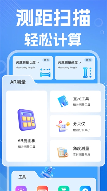 AI尺子测距仪软件是一款实用性很强的智能测量工具,无论是测量角度还是长度,都能借助软件轻松完成调整操作。此外,软件内还配备了多种实用工具,能够充分满足用户在日常学习和工作中的各类需求。值得一提的是,所有工具均为免费提供,用户无需支付任何费用,可安心使用。