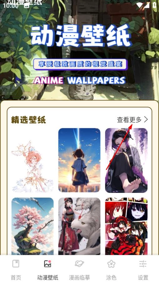 在动漫壁纸页面,点击“查看更多”按钮,即可进入动漫壁纸列表页面。