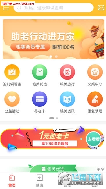 银美是一款专注于养老生活的服务平台,为用户构建了一站式服务体系,涵盖健康管理、智能家居、家政服务、公益项目、养老照护等多元服务板块,致力于为老年人提供智能化的养老支持。平台还精心设置了养生知识、文化活动、娱乐项目以及老年大学等丰富内容,旨在为老年人的生活增添更多乐趣。感兴趣的朋友不妨来体验一下吧。