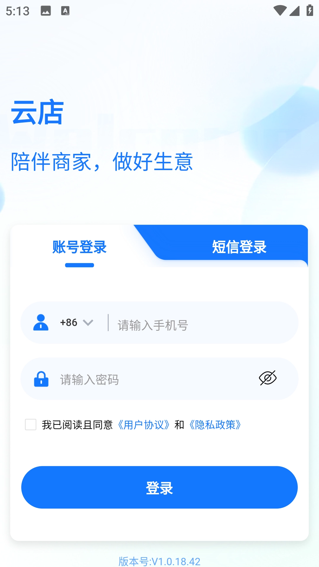 输入手机号码和密码后点击登录按钮就能完成登录,同时也提供验证码登录的方式。