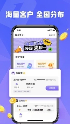 提供在线展业服务,用户可随时便捷地抢单获取客户资源。