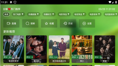 进入首页页面后,顶部栏陈列着丰富的影视资源,涵盖热门电影、热门电视剧以及热门综艺等内容。