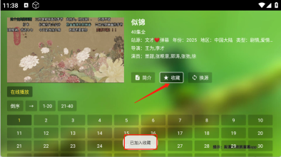 1、进入影视播放页面点击“收藏”。