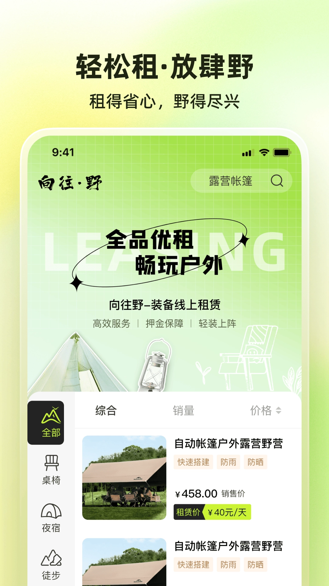 户外设备租赁的品质可靠,租来的帐篷等装备成色很新,使用感受佳,价格还划算。