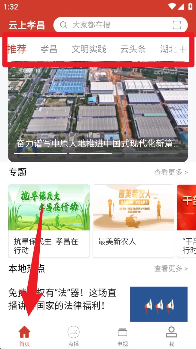 点击底部导航栏的「点播」入口,就能查看孝昌新闻、政务专题、健康讲堂等本地视频内容。