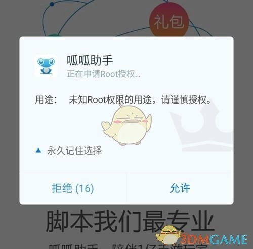 完成操作后打开呱呱助手,会提示需要获取root权限,点击允许就可以了。