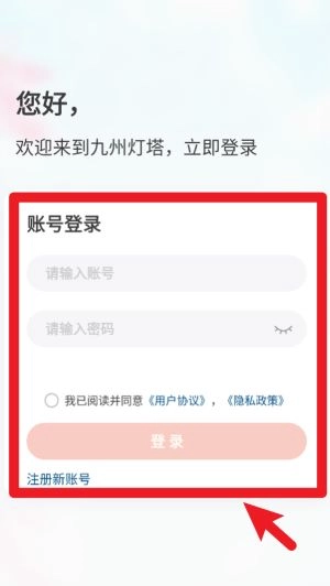 用户打开应用后,首先会进入登录界面,需要输入账号和密码,并且勾选相关协议,之后点击登录按钮,以此来完成身份验证。