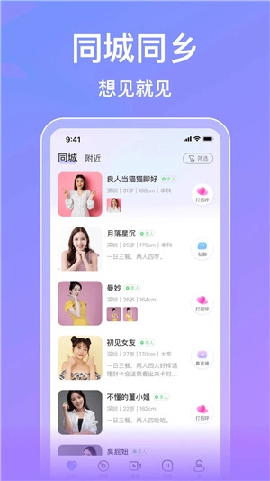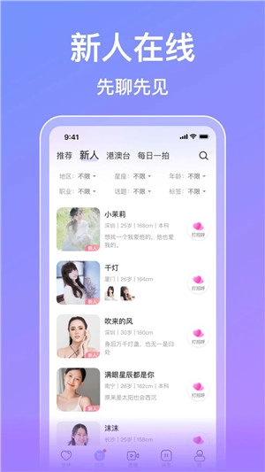 平台上还设有不少趣味十足的功能助力用户寻觅理想伴侣,缘分速配便是其中之一。该功能依托地理位置、兴趣偏好、交友标签、个人资料等多维度信息,为契合彼此调性的异性用户实现快速匹配,并通过视频聊天的方式,推动双方建立起情感层面的互动与联结。