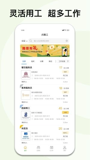闪易工的核心目标是打通劳动力需求与工作机会之间的对接通道,平台上整合了日结、周结等多种灵活的临时性用工岗位。用户完成任务后即可实时结算薪资,保障收入快速到账。不管是想找短期项目来灵活安排时间,还是寻求长期稳定的工作机会,闪易工都能适配不同用户的多样化需求。