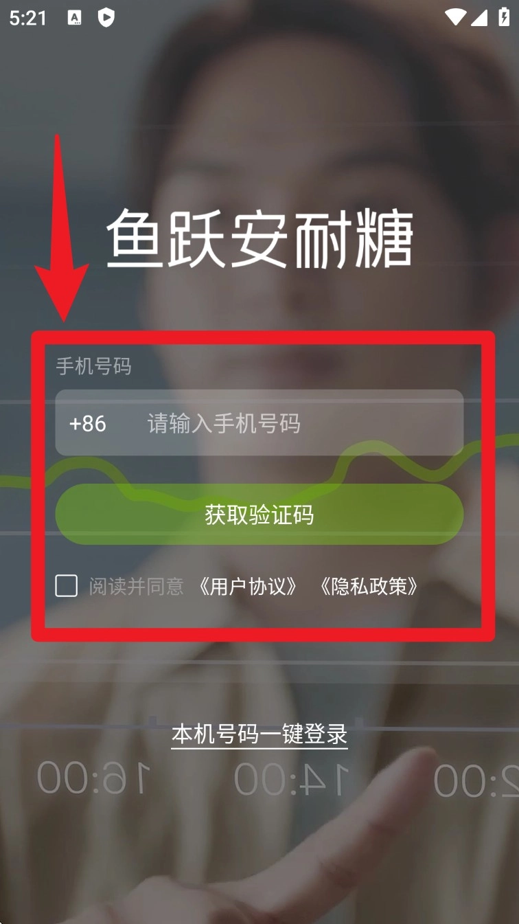 打开应用程序,输入您的手机号码,勾选用户协议和隐私政策,然后点击“获取验证码”按钮以完成登录流程。
