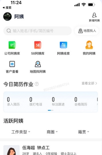接收平台下发的线索以及阿姨动态等消息推送;提供高效的建联途径,借助即时IM助力客户转化