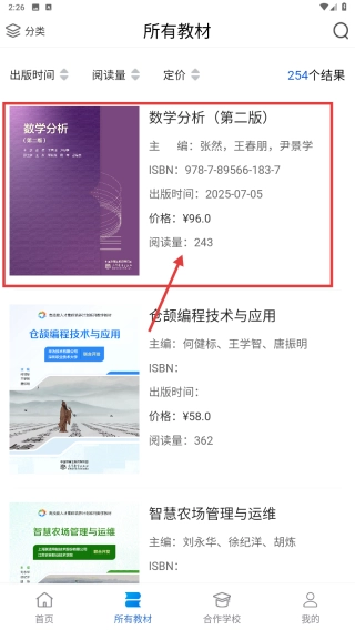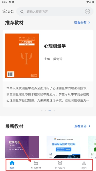 打开应用首页后,点击底部的“所有教材”选项,即可浏览全部教材列表。