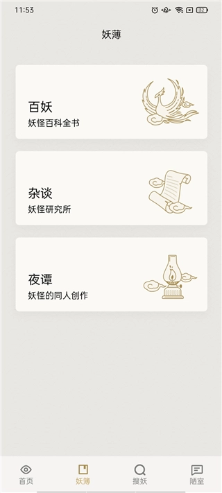 在妖薄里,我们能挑选百妖、杂谈、夜谭这三种不同的类型。