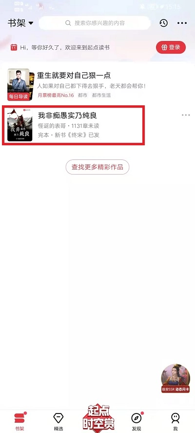 首先我们要打开这款软件,无需开通会员就能听书;在软件首页的书架上,能看到我们之前阅读过的小说,接着点击对应的小说,就能进入到小说的内容界面了。