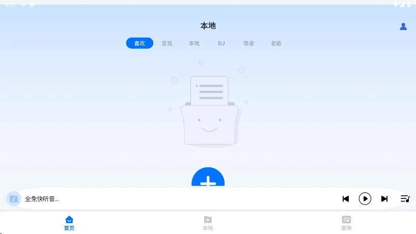 首页呈现多样的听歌服务,支持播放本地音乐或个人喜爱的音乐素材。