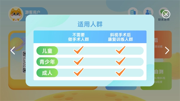 科学训练体系,通过评估与训练相结合的方式,帮助用户切实改善斜视状况。