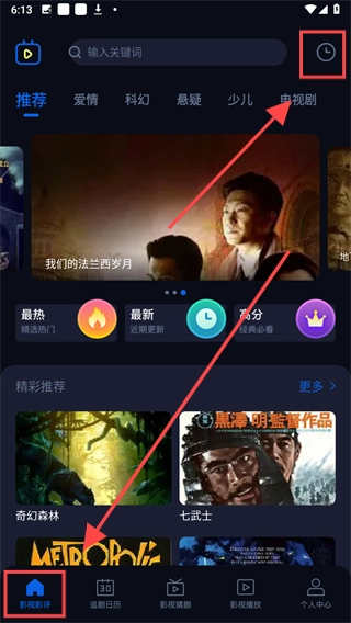 首先,用户打开应用后,进入页面下方偏左位置的【影视影评】界面,接着点击该界面右上角的【浏览记录】按钮。