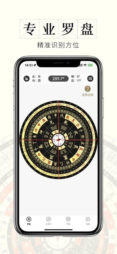 2、【指南针功能】:利用手机的定位功能,标注座向方位和刻度显示,精准校对0误差;