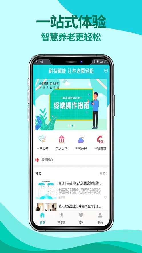 全家康平安通专注于为您与家人提供全方位高品质的养老服务;让您无需出门即可获取各类养老资讯,享受个性化的一站式养老服务;始终关怀老人的安全保障。