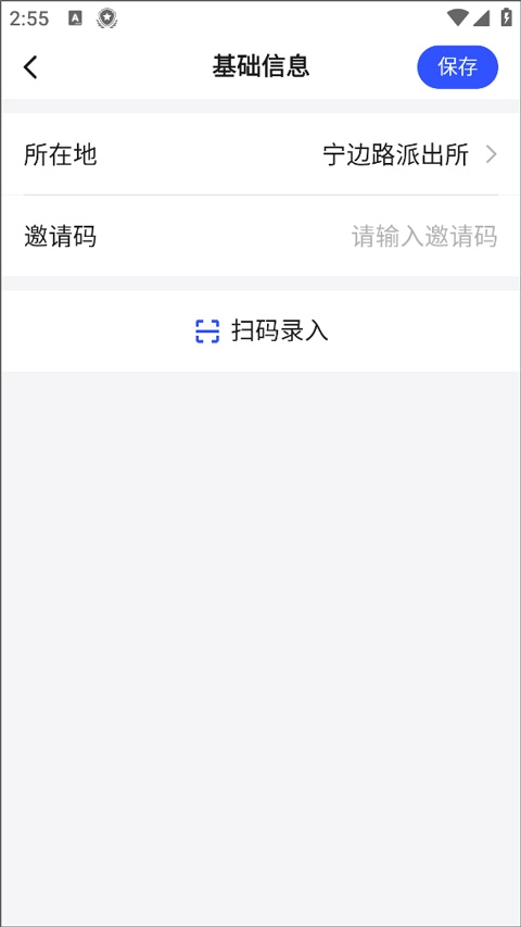 3、于基础信息页面,用户选择所在地,通过输入邀请码或者扫码录入,即可完成注册。