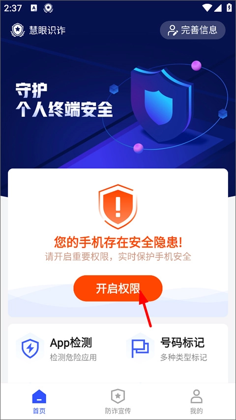 用户仅需完成安装,并开启相应权限,就能畅享防骗服务。