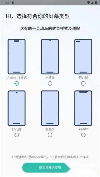 1、打开软件后,先选择一种适配自身设备的屏幕类型,再点击【选择并开始使用】按钮。