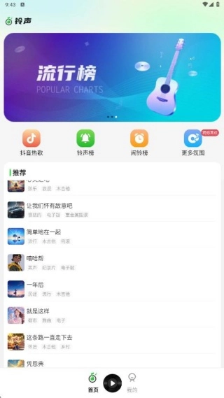 首页为我们提供了抖音热歌、铃声版、闹铃榜、更多氛围板块,以及铃声推荐资源。