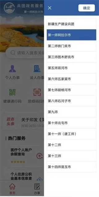 完成注册与实名认证后,进入“兵政通”掌上平台首页,找到并点击“新疆生产建设兵团”板块。