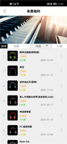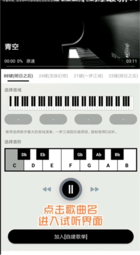 用户能够在软件里自行创建歌单,并且可以在歌单中弹奏自己喜爱的钢琴曲。