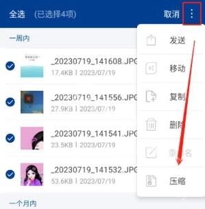 选择多张图片,点击右上角三点,选择压缩。