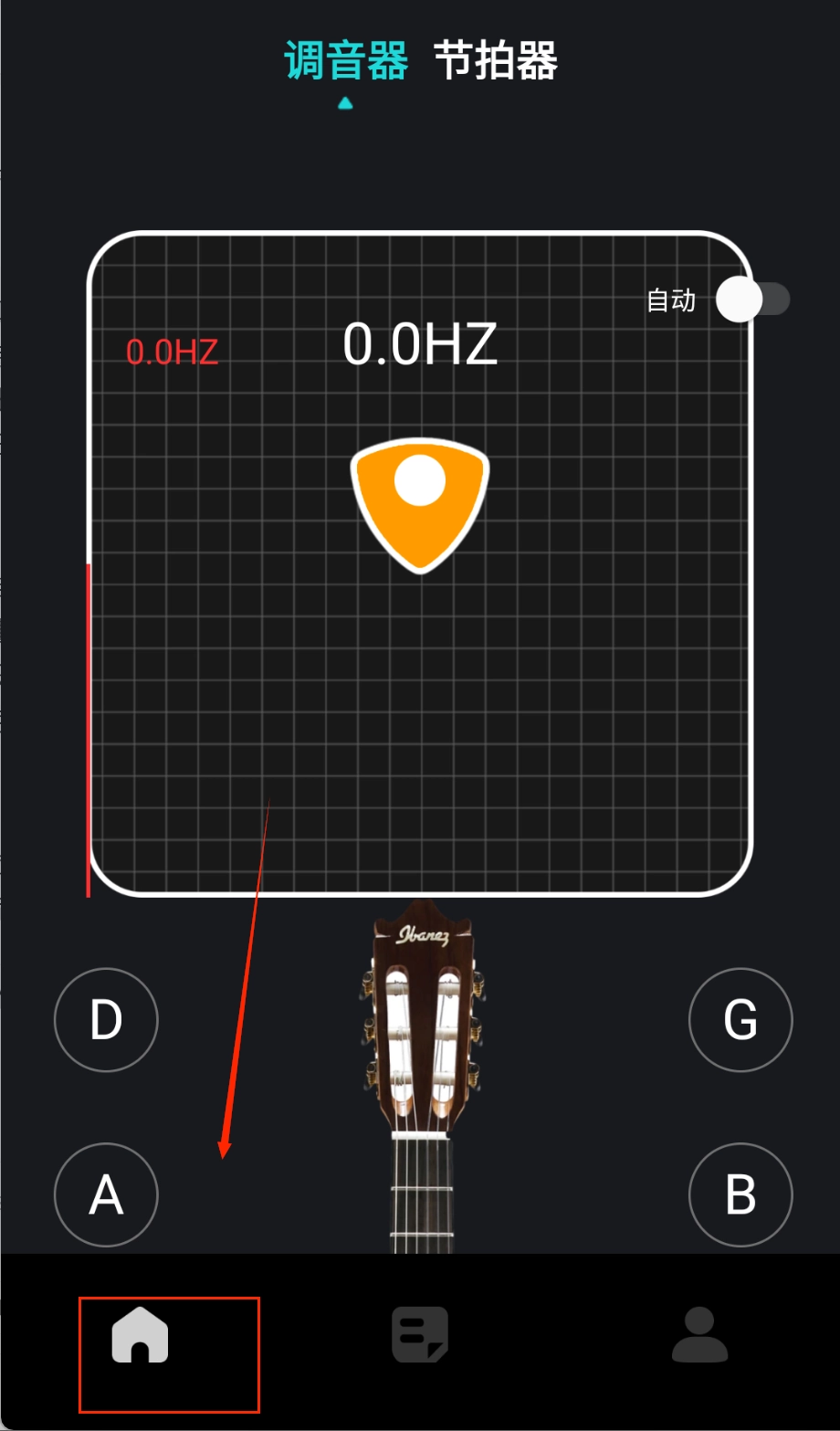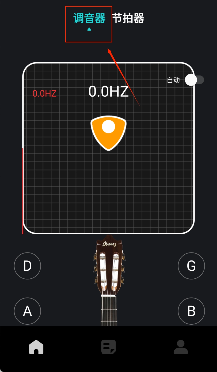 使用调音器功能时,把手机凑近乐器的发声处,依据屏幕上指针的指向和颜色的提示来调节琴弦,直至显示调音精准即可。