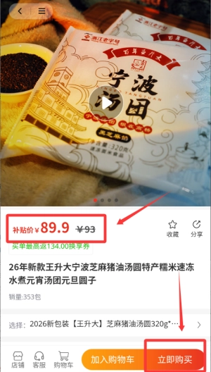 你可以查看补贴后的价格,然后点击右下角的“立即购买”按钮。
