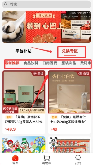 想要探索和选购商品,可以通过首页的“推荐好物”或者“进店选购”来浏览商品,还能参考“服务评价”帮助自己做决策,领取优惠券之后再下单。