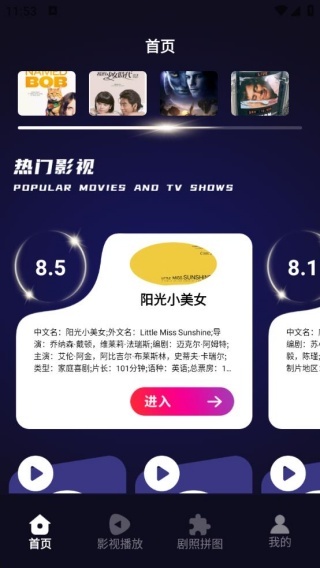 1、融合影视播放、推荐、详情展示与具有互动性的剧照拼图功能,以满足用户在影视相关方面的多元需求。